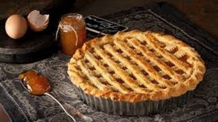 – نأخذ ثلاث أرباع العجينه ونفردها بصينيه مستطيلة الحجم، ثم ندهنها بنوع المربى الذي اخترتموه.