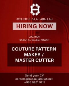 Huda AlJarallah Atelier is seeking a talented and experienced Fashion Pattern Maker / Head Cutter to join our couture team. The ideal candidate will translate complex fashion designs into precise patterns for evening and bridal gowns, working closely with our design team to bring creative visions to life.