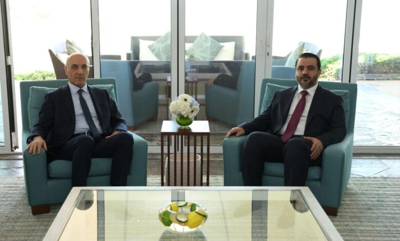 التقى وزير الداخلية والبلديات أحمد الحجار، وزير الخارجية السورية أسعد حسن الشيباني، في البحرين، في حضور سفير لبنان لدى البحرين هادي هاشم.