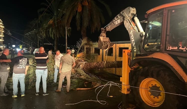 كما عمل فريق من بلدية صور على ازالة الأضرار وشجرة النخيل من الشارع، بأمر من نائب رئيس البلدية علوان شرف الدين، وعملت جرافة إلى انتشال الشجرة. كما جرفت مياه الأمطار الحصى والتربة من البساتين إلى الشوارع.