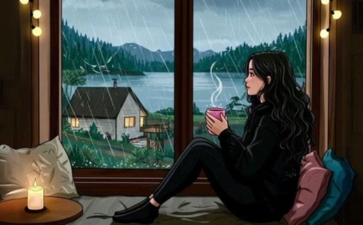 إن الفرح أحيانًا لا يحتاج أكثر من نافذة، وكوب قهوة، ومطر يعرف كيف يلامس القلب ويُريحه…