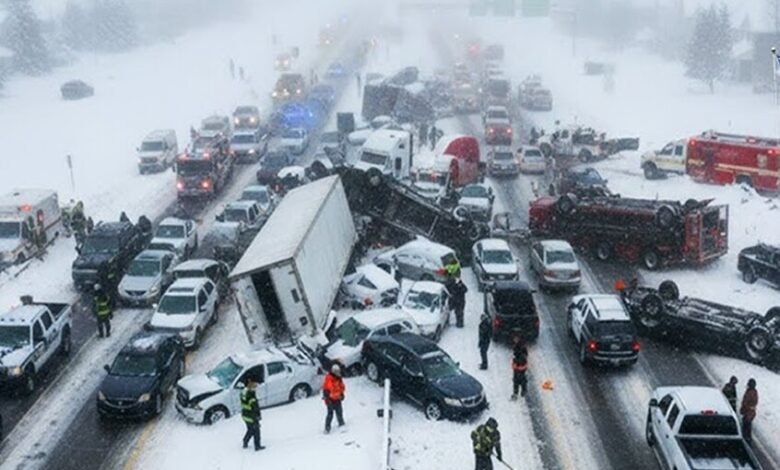 حادث تصادم ضخم بين 45 مركبة على طريق سريع بسبب الثلوج