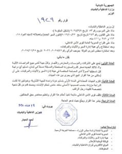 أصدر وزير الداخلية والبلديات احمد الحجار قرارًا يقضي بمنع الشركات والمؤسسات والمعارض والتجار وكل جهة تُعنى ببيع الدراجات الآلية و/أو الـATV سواء الجديدة منها أو المستوردة المستعملة في لبنان، من تسليم أي دراجة قبل تسجيلها أصولًا لدى المصلحة المختصة في هيئة إدارة السير والآليات والمركبات وإلزامها بتسليم خوذة للجهة الشارية.