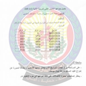 “تعلن المديرية العامة لأمن الدولة عن مواعيد الاختبار الطبي للمرحلة الثانية للمرشّحات المتطوّعات لرتبة مأمور متمرّن (إناث فقط)، أمام لجنة التطوّع في مدينة كميل شمعون الرياضية – المدخل الجنوبي، عند الساعة السابعة صباحًا، وذلك وفقًا لأرقام الترشيح والتواريخ المرفقة بالصورة.