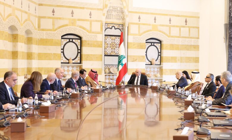 ترأس الرئيس جوزاف عون اجتماعاً حضره مستشار وزير الخارجية السعودية، الأمير يزيد بن فرحان، والموفد الفرنسي، الوزير السابق جان إيف لودريان، والسفير الأميركي في لبنان ميشال عيسى، ومساعد وزير الخارجية القطري محمد بن عبد العزيز ال ثاني، وسفراء السعودية وفرنسا وقطر ومصر، للبحث في التحضيرات الجارية لانعقاد مؤتمر لدعم الجيش والقوات المسلحة.