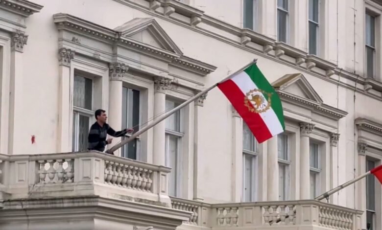 قامت السلطات البريطانية بإيقاف متظاهرًا اعتلى مبنى السفارة الإيرانية في لندن ونزع العلم المرفوع على سطحها، بحسب ما أعلنت الشرطة، وفق ما جاء في وكالة “فرانس برس”.