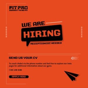 Fitpro Gym; CityWalk Hazmieh – Facing City Center beirut is hiring a receptionist