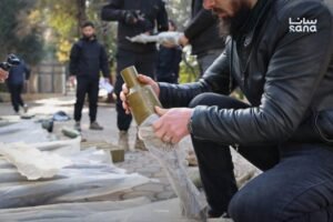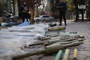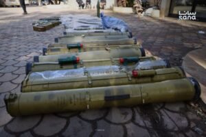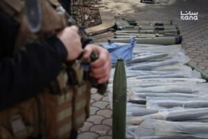 وأوضح مصدر أمني لـ سانا أن القوى الأمنية اعترضت سيارة من نوع “شفروليه” كانت محمّلة بتسعة صواريخ موجهة من طراز “كونكورس”، و68 حشوة RPG، وصاروخين من نوع 107، إضافة إلى خمسة صناديق ذخيرة BKS ، كما داهمت وكر العصابة الكائن في بلدة جريجير والذي نُقلت منه الأسلحة، حيث عُثر على مخازن روسية ومنظار نهاري، فيما تتواصل الجهود لملاحقة جميع المتورطين في العملية.