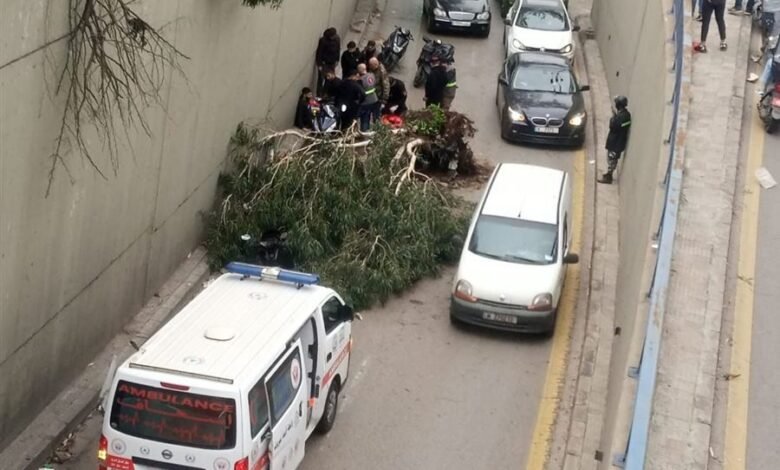 سقوط شجرة يُصيب سائق دراجة قبل نفق شاتيلا
