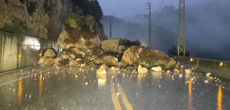 انهارت صخور على الطريق العام في محلة مكرا-لحفد في جبيل، إثر سقوط كتل صخرية من الجبل المجاور، ما شكل خطرًا على السلامة العامة وأوقف حركة السيارات في كلا الاتجاهين، وأدى إلى قطع الطريق بالكامل.