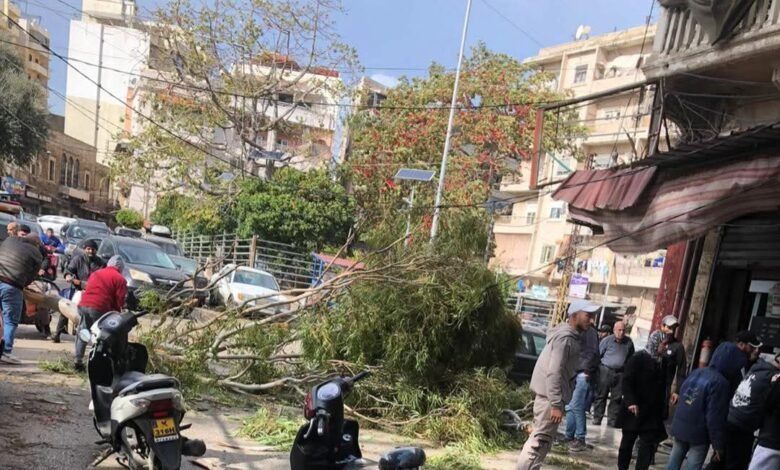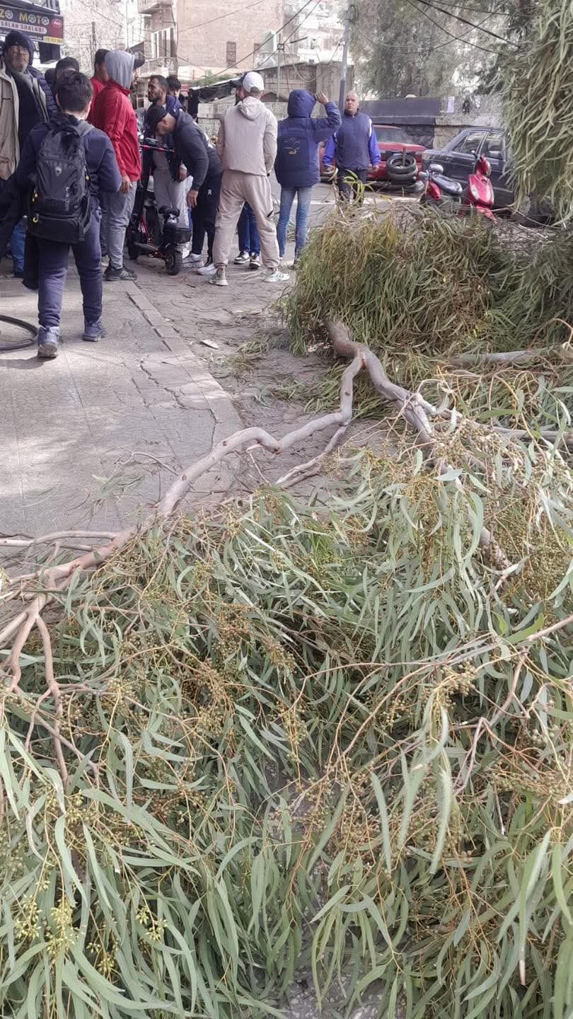 سقطت شجرة من داخل مدافن باب الرمل على الطريق المؤدي إلى أفران الشرق والبركة، نتيجة اشتداد سرعة الرياح، ما تسبب بإرباك مؤقت في حركة السير في المنطقة.