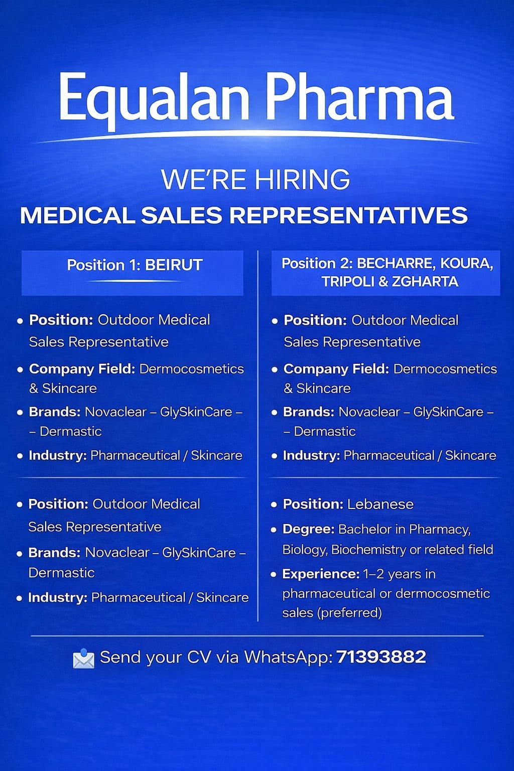 Send your CV via WhatsApp: 71393882