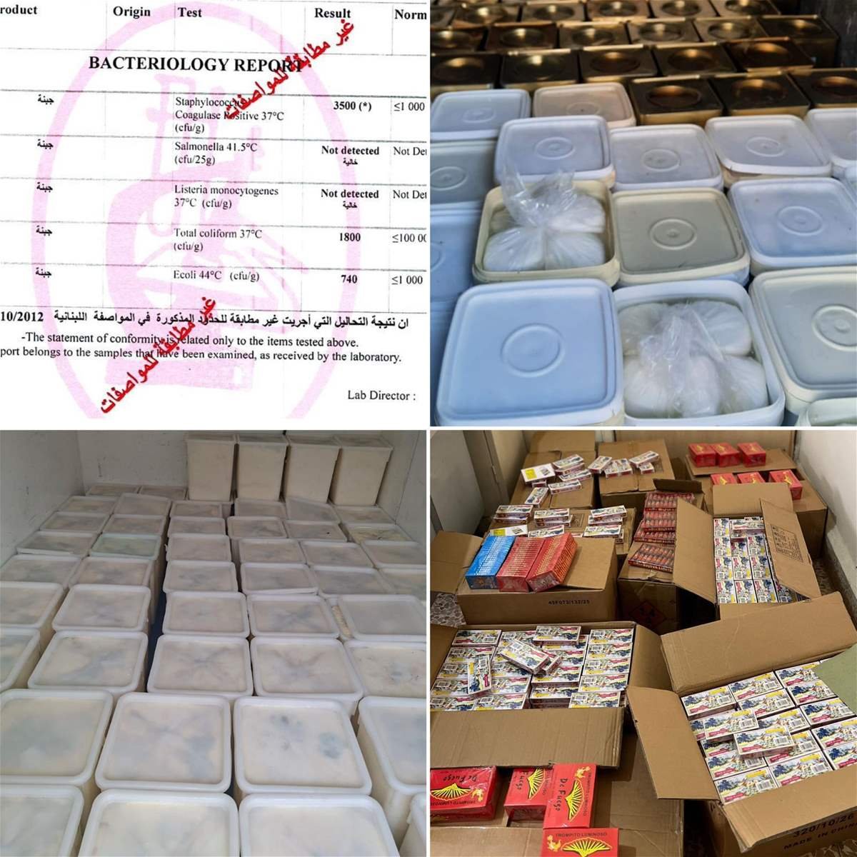 – مفرزة بعلبك: ضبط ٦٤٠ كغ من الأجبان المهرّبة وغير المطابقة للمواصفات، بالإضافة إلى كمية من الألعاب النارية الممنوعة.