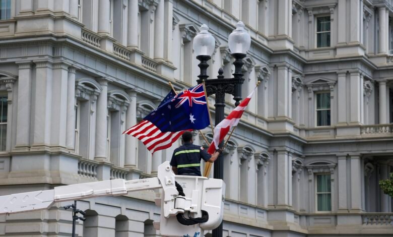 ولفترة وجيزة، تم رفع 15 من الأعلام الأسترالية ضمن أكثر من 230 علما للترحيب بملك بريطانيا عند وصوله إلى واشنطن، الإثنين.
