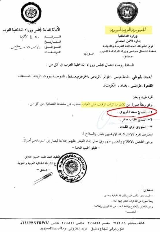 في مثل هذا اليوم من العام 2012 أصدر النظام السوري برئاسة بشار الأسد مذكرة توقيف بحق رئيس الحكومة اللبناني الأسبق سعد الحريري بتهمة مدّ الثوار في سوريا بالمال والسلاح.