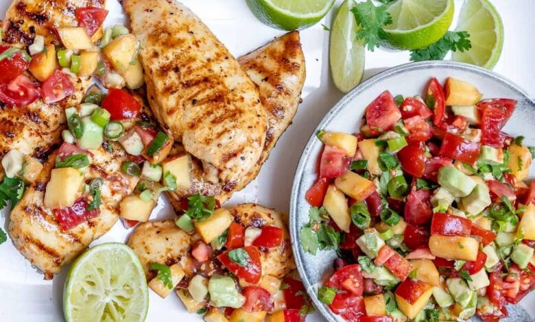– غطي كل صدر دجاج بملعقة كبيرة من صلصة الخوخ.