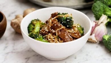 المقادير: -3/4 كوب من معكرونة -1 ملعقة كبيرة من زيت الزيتون -1 كيلو من شرائح لحم البقري الطري، مقطعة…