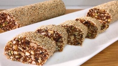 المكونات: 70 جرامًا من المشمش المجفف 50 جرامًا من الجوز 70 جرامًا من البندق 30 جراما من بذور اليقطين…
